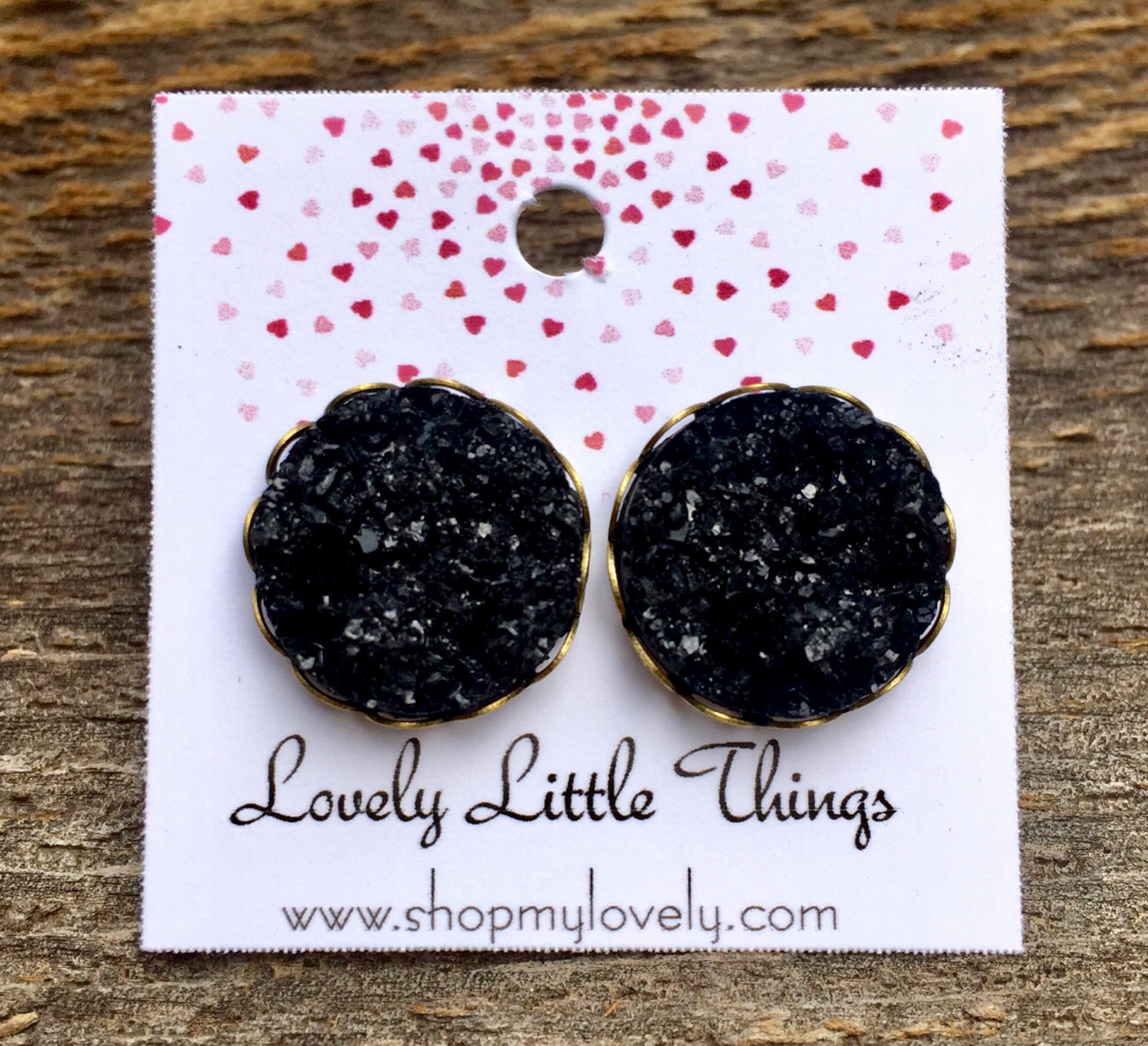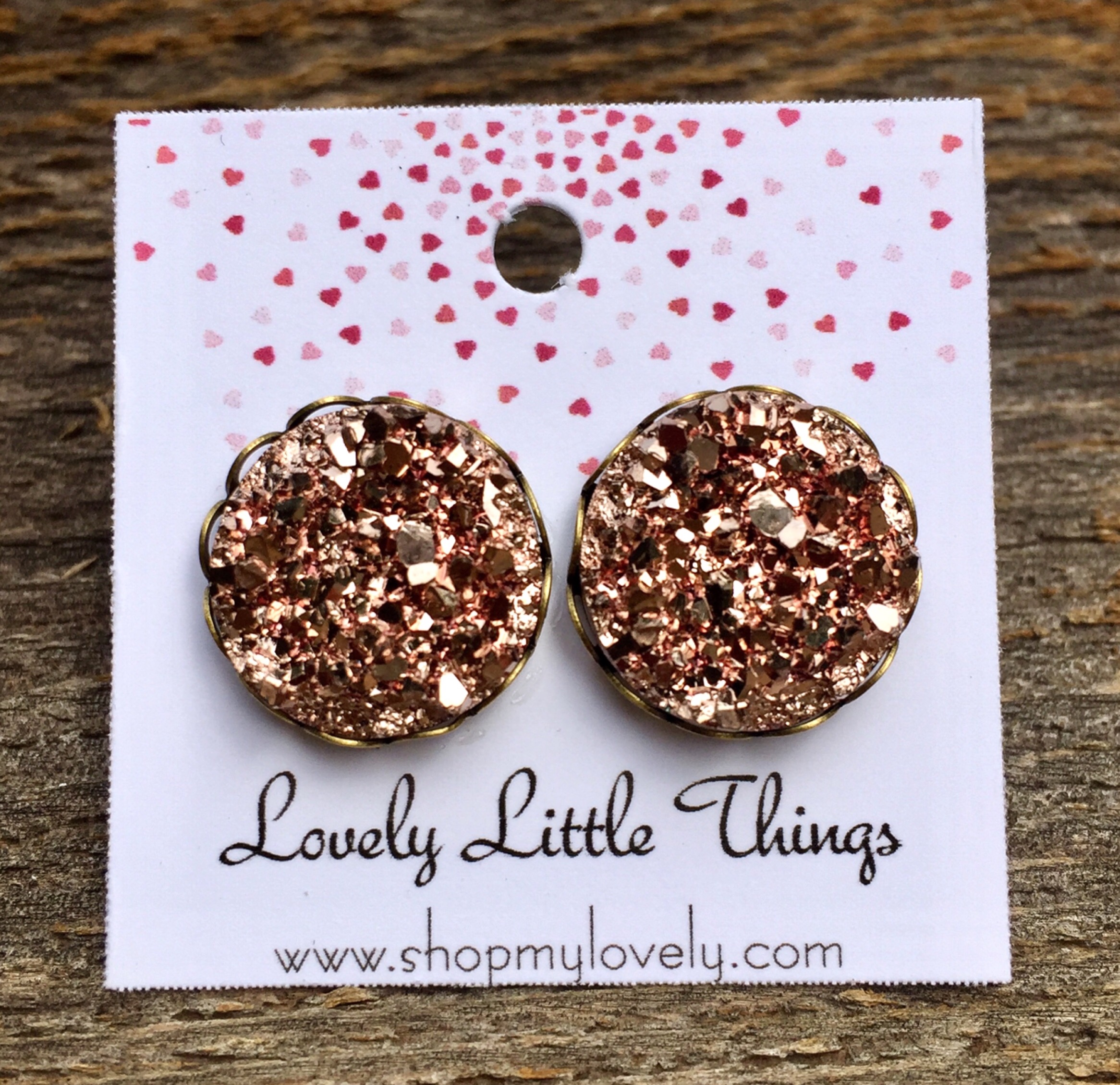 14mm faux druzy studs in a bronze lace setting.