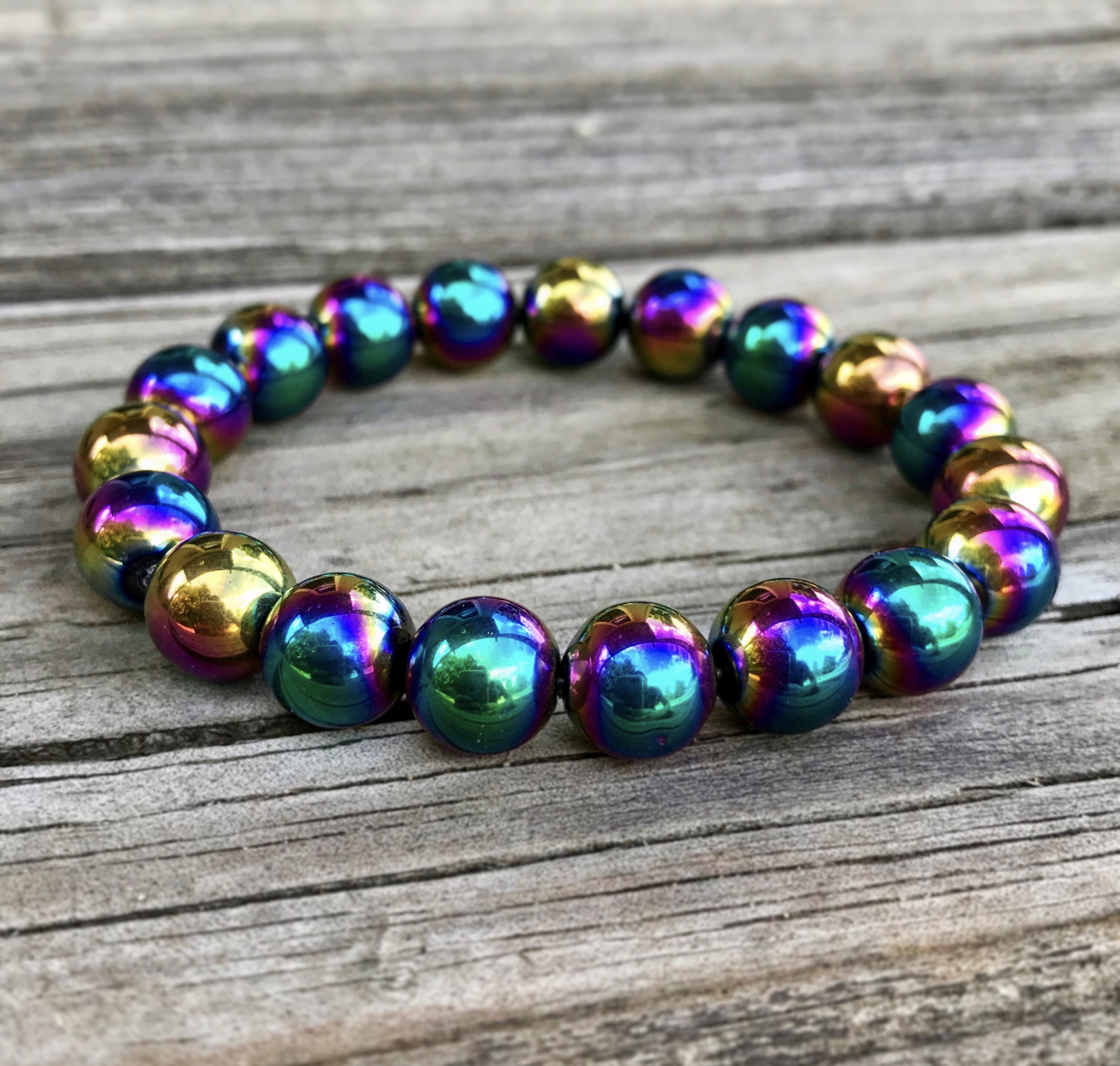 The stunning rainbow hematite bracelet is perfect for stacking or even alone! However you wear it, you will definitely make a statement!
