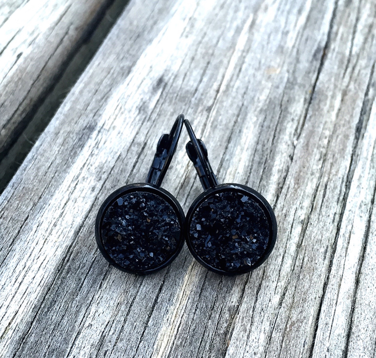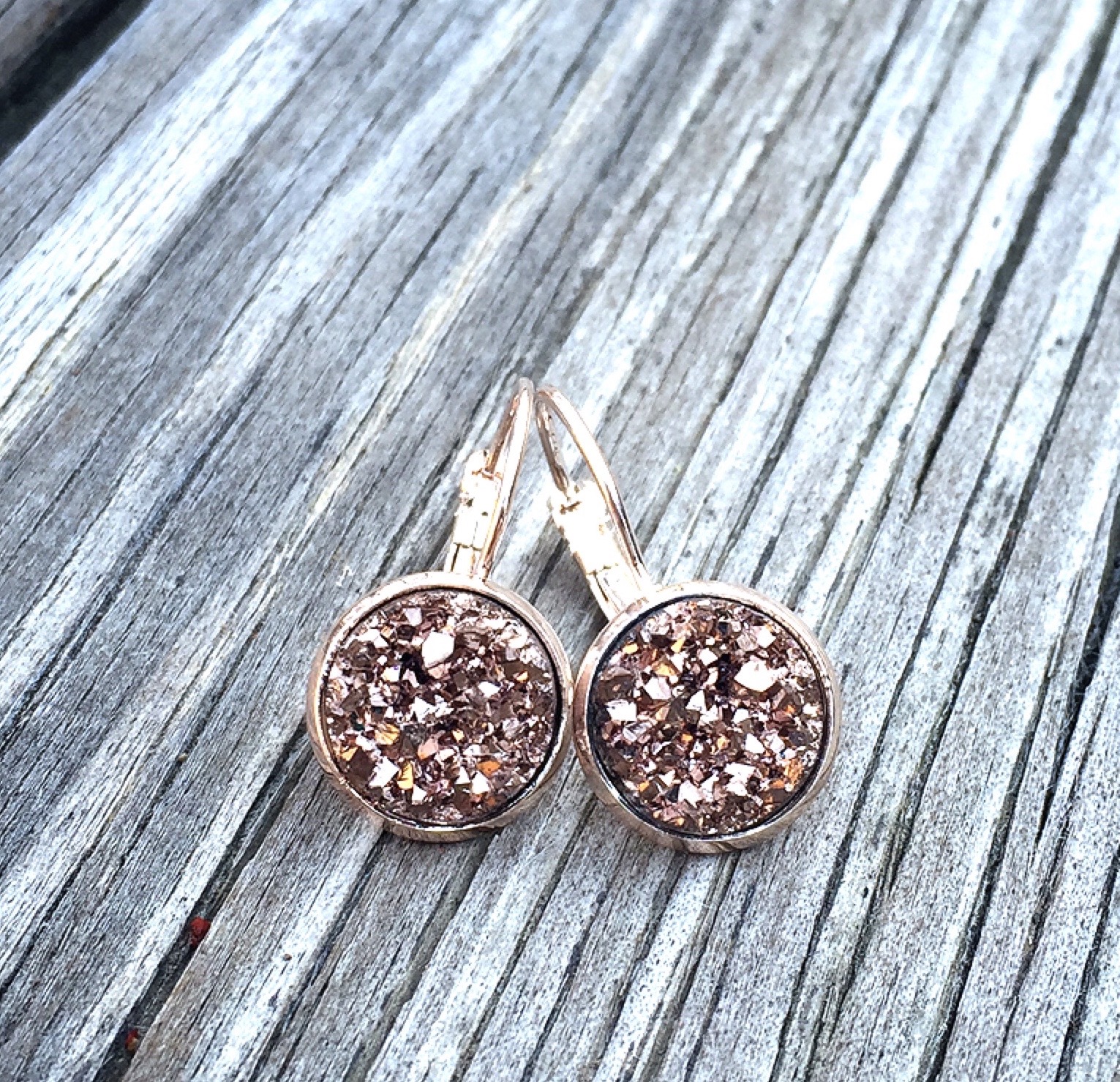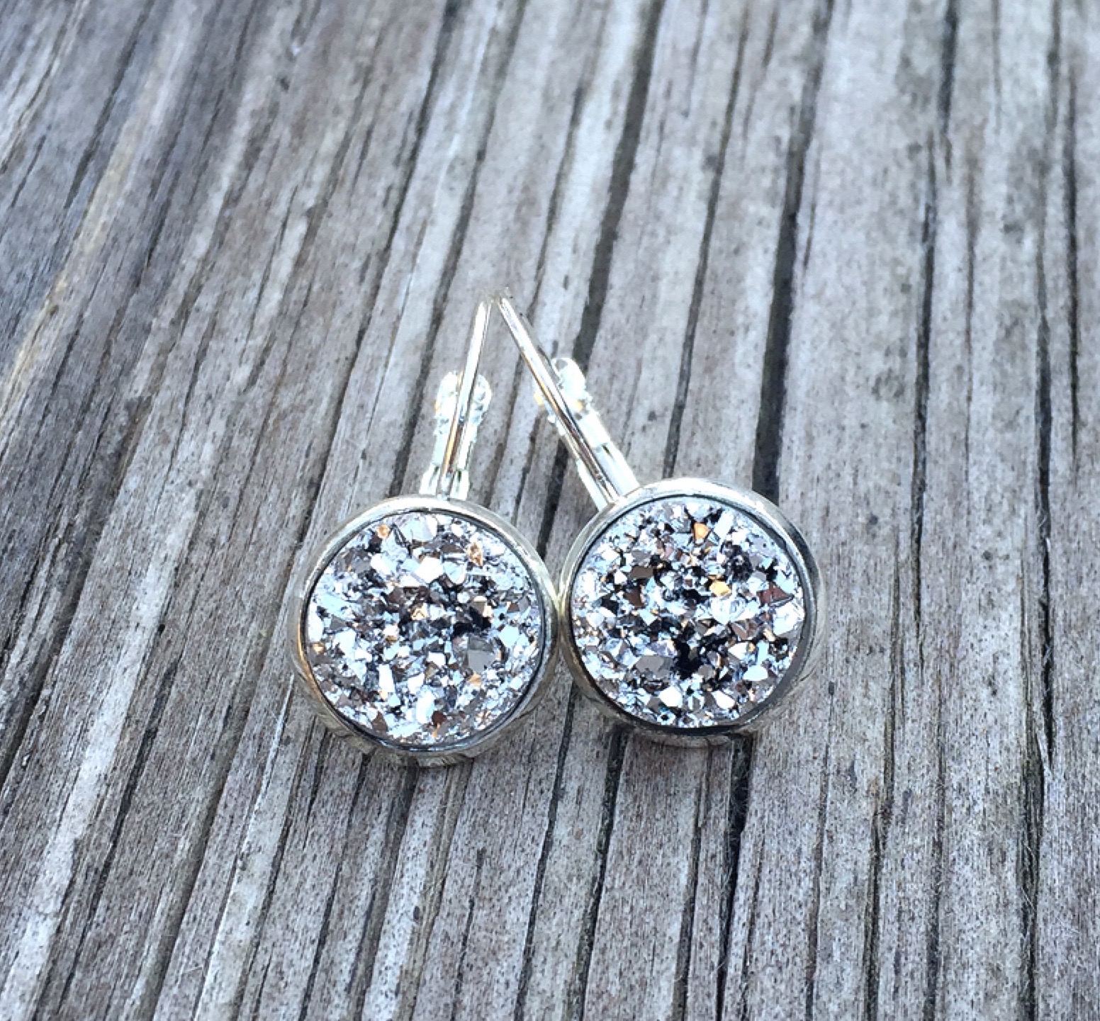 12mm drop dangle earrings with lever back clasp. This style comes in a wide variety of faux druzy & glass dome centers, as well as settings.