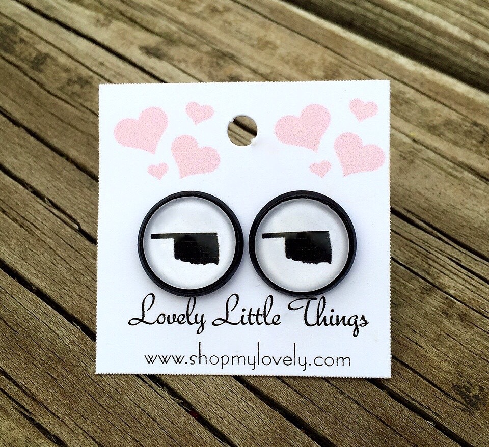 12mm custom designed Oklahoma silhouette studs in a black setting.
