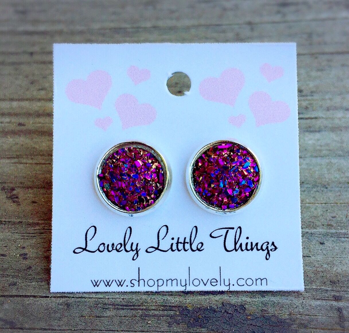 10mm magenta rainbow faux druzy studs with silver setting.