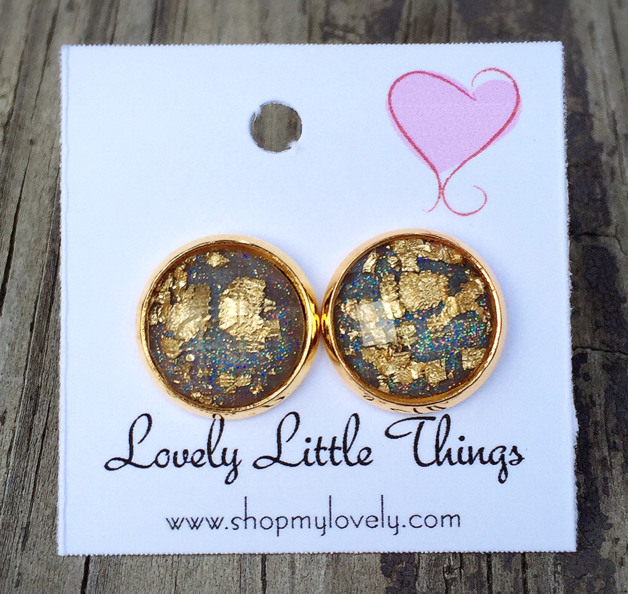12mm grey & gold foil studs with gold setting.