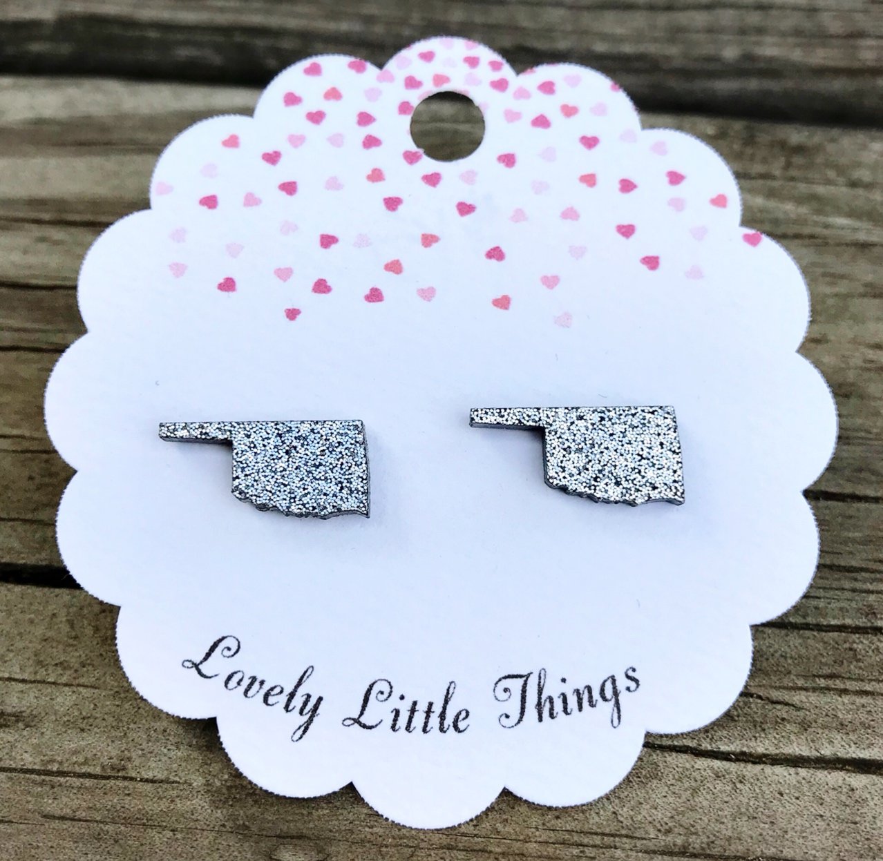 Show some state pride with these super cute, silver glitter Oklahoma studs!!!